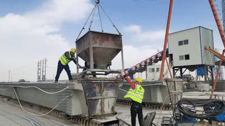 目前拌合站料仓已具备地材储备条件,3月27日开始碎石、水洗砂进料工作,已完成3套设备的主体安装,180型拌合机具备生产条件并完成调试,为4月5日第一片首梁施工做好充分准备。