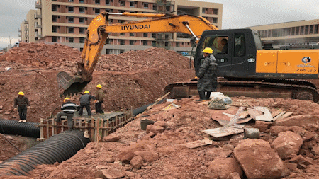 2020年2月15日,吉利学院项目第一批管理人员进场准备复工。截止目前,项目已累计进场70人,其中管理人员15人,生产工人55人,施工机械20台。项目进入全面生产阶段,主要进行排水工程、路基工程施工,项目质量控制、安全文明施工均正常。